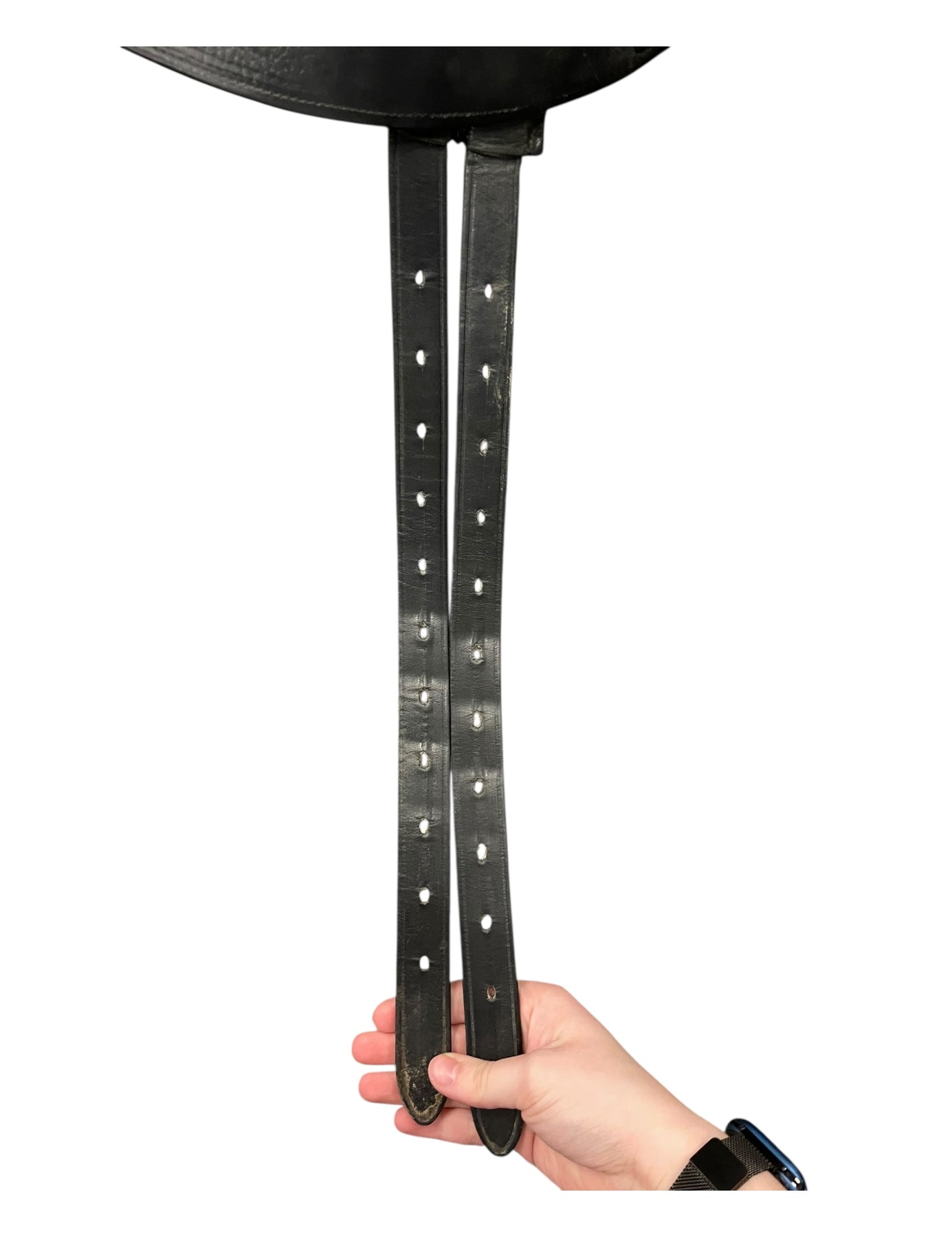 Condition: In good used condition with minor cosmetic blemishes. Much regular wear can be seen. Some surface level thin cracks in the leather is visible on the seat and twist.