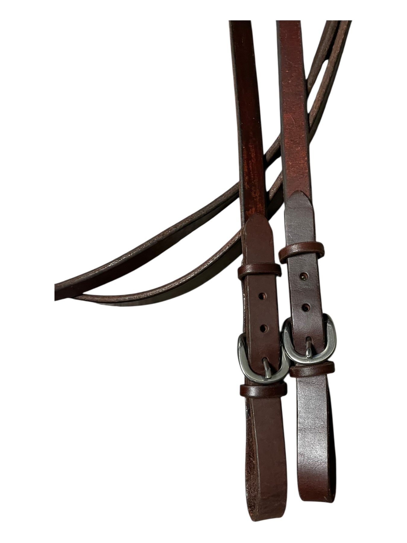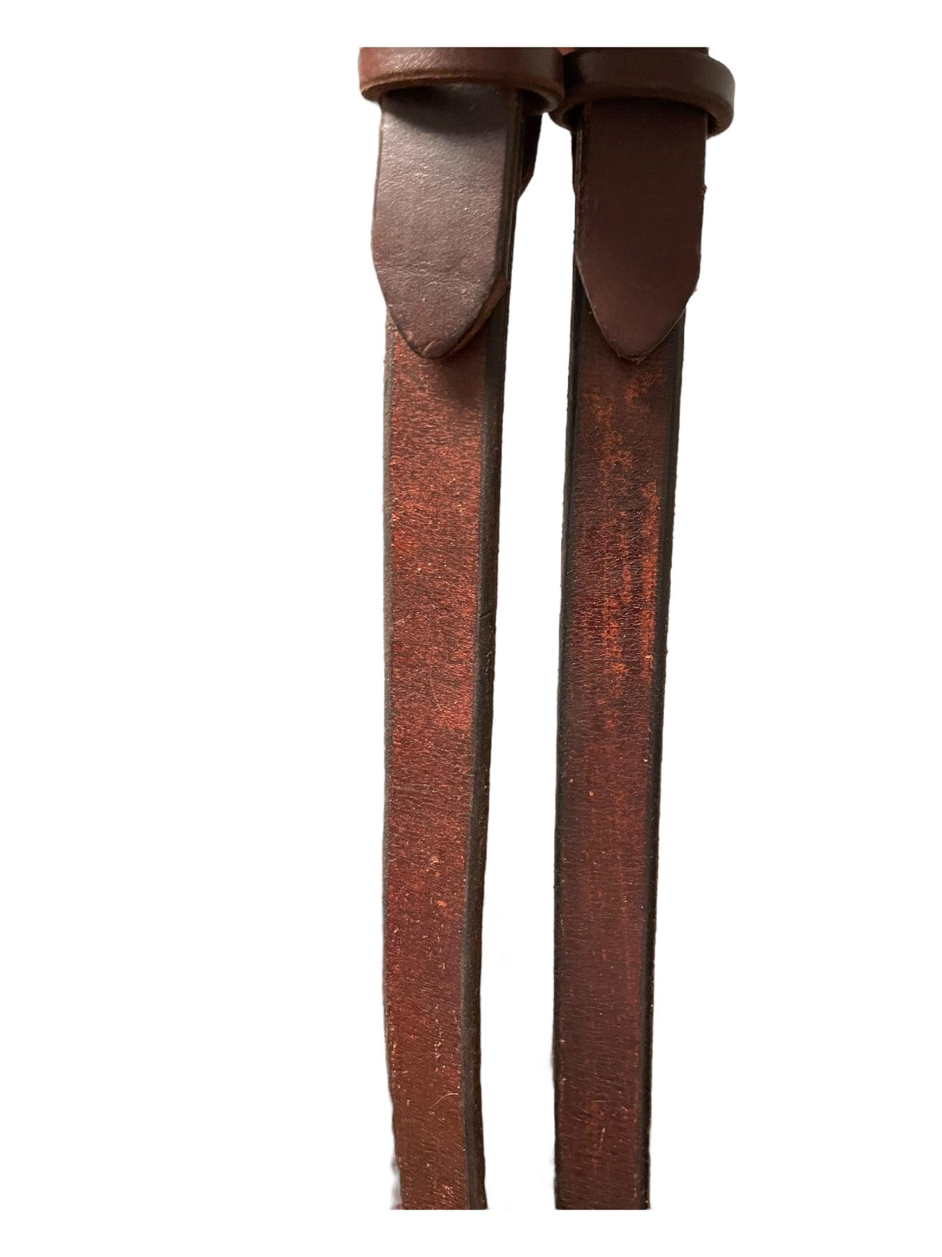 Condition: In good condition, shows light use. Some areas on the end of reins are slightly lighter than the rest of the leather. While this might even out with some conditioning, it cannot be guaranteed.