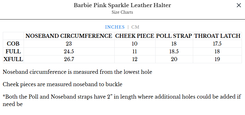 Super pretty halter made with Pink Sparkle Patent Leather, and plush bubblegum pink Nappa Leather padding with stainless steel buckles and fittings, this halter is a MUST HAVE for the die hard Barbie fan!