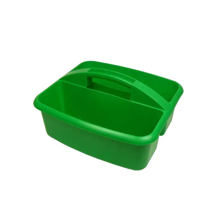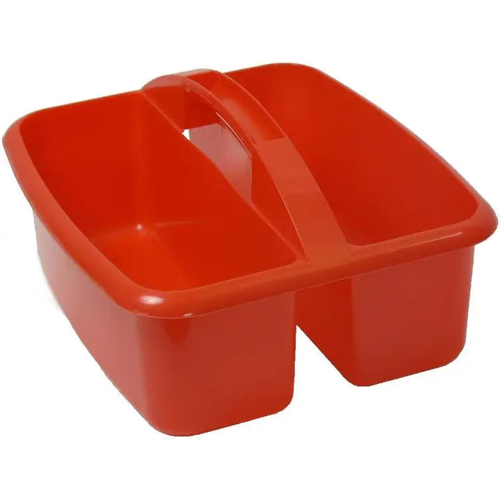 13"x11"x17". Plastic grooming tote with two sections. Sturdy and economical.