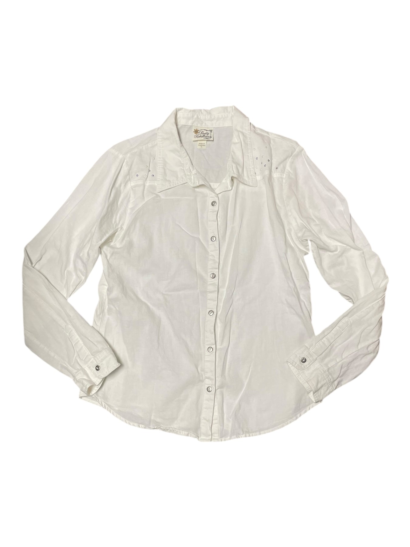 Pretty Rebellious Button Up Top - White - XL - USED