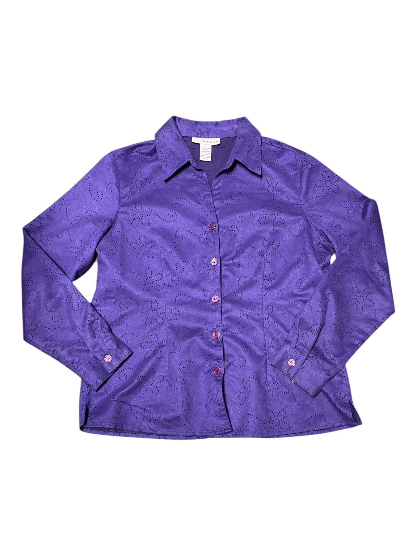 Sag Harbor Perforated Button Down Top - Purple - L - USED