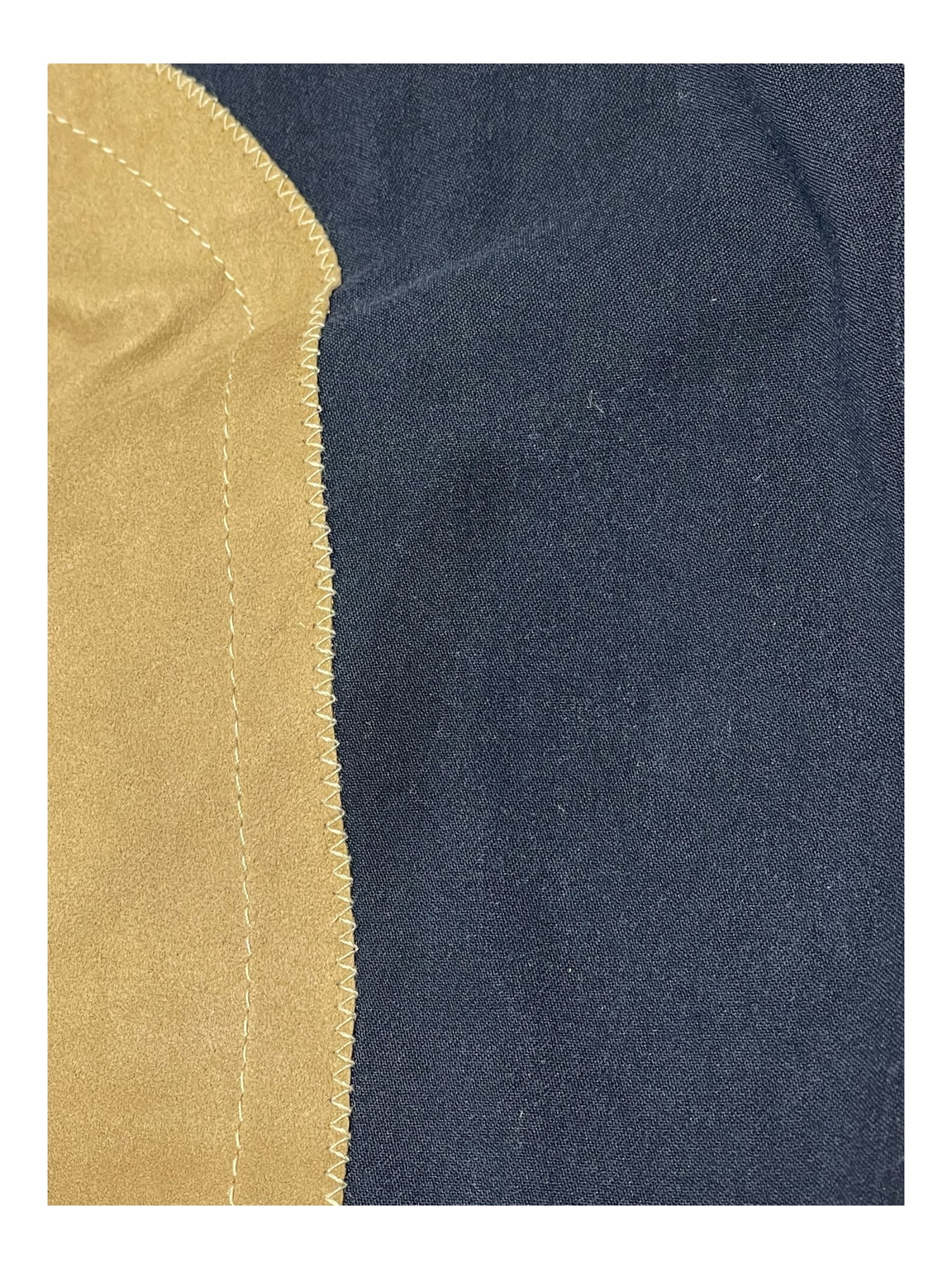 Condition: In good condition. Shows light wear. There is one spot of very faint discoloration beside left knee patch.