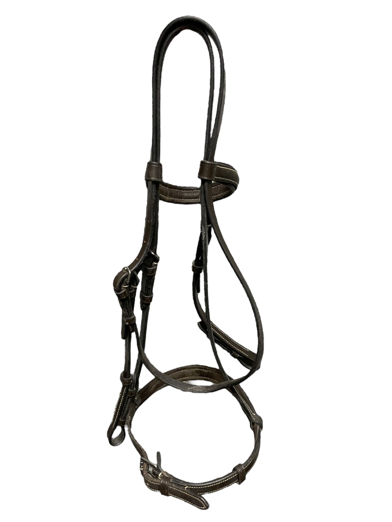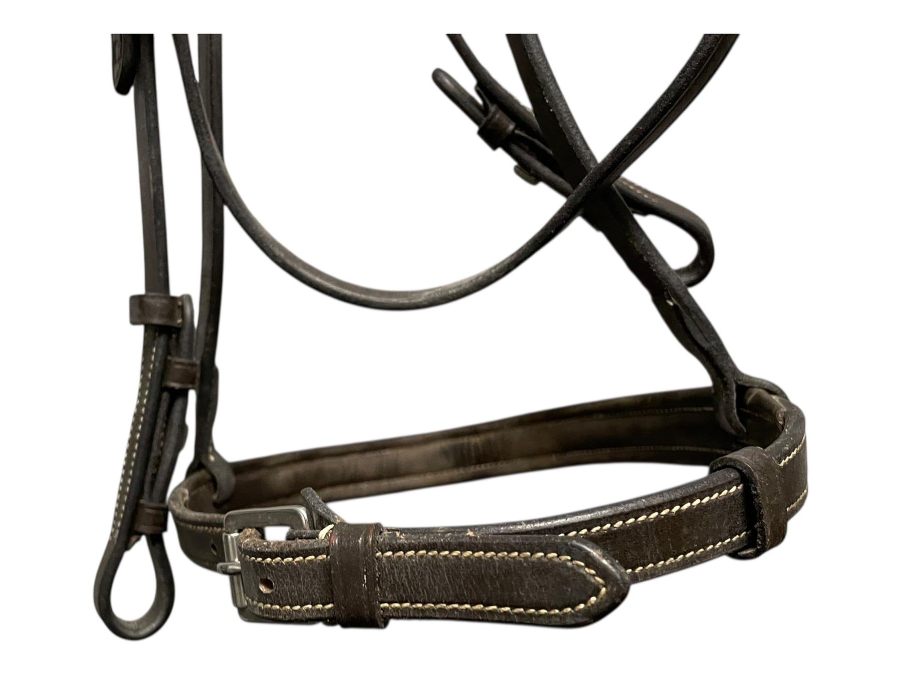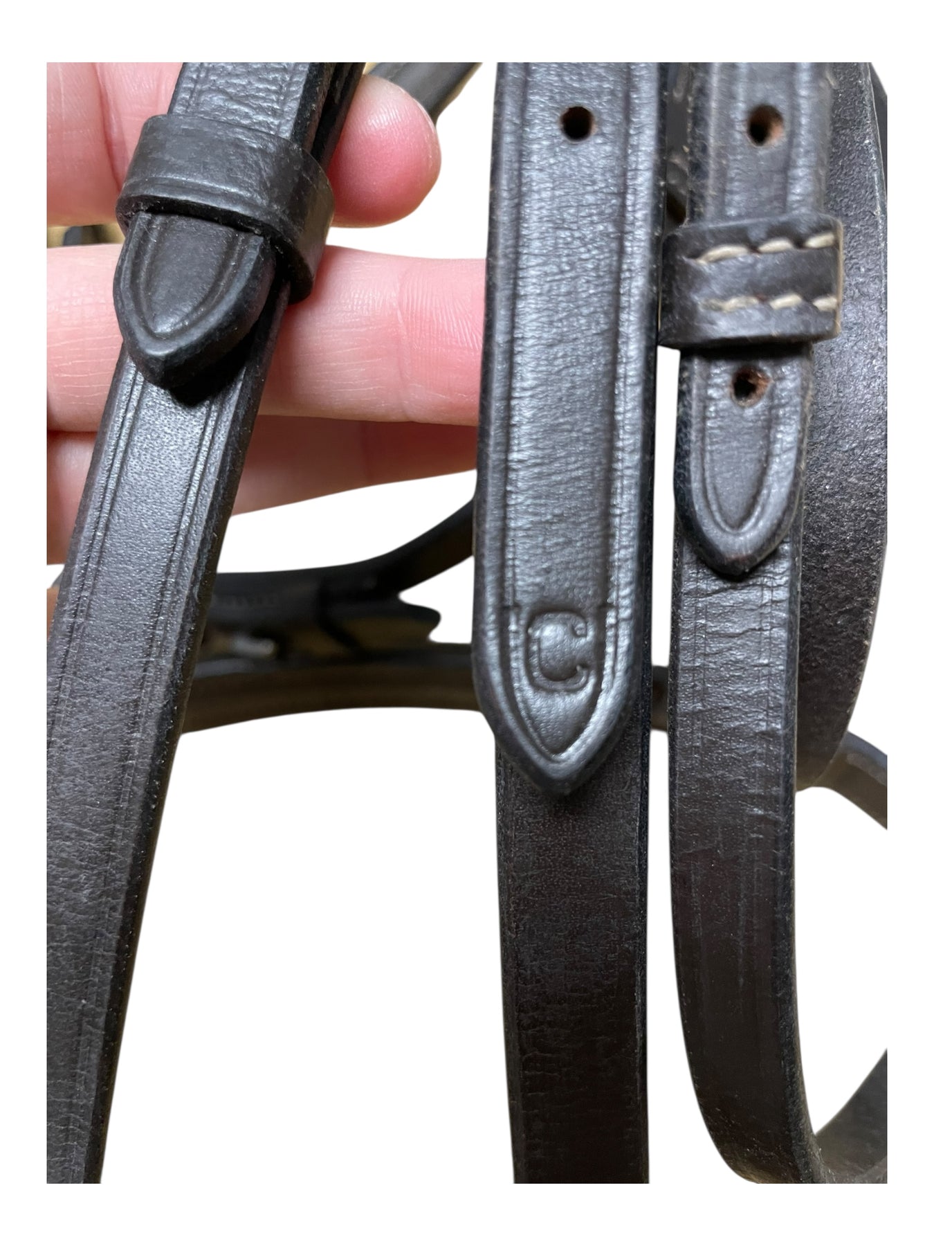 Condition: Fairly good condition. Shows regular wear. A little bit of buildup can be seen on the inside of the browband, nose band, etc.