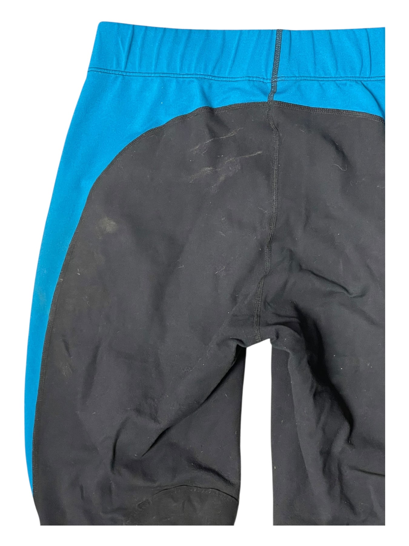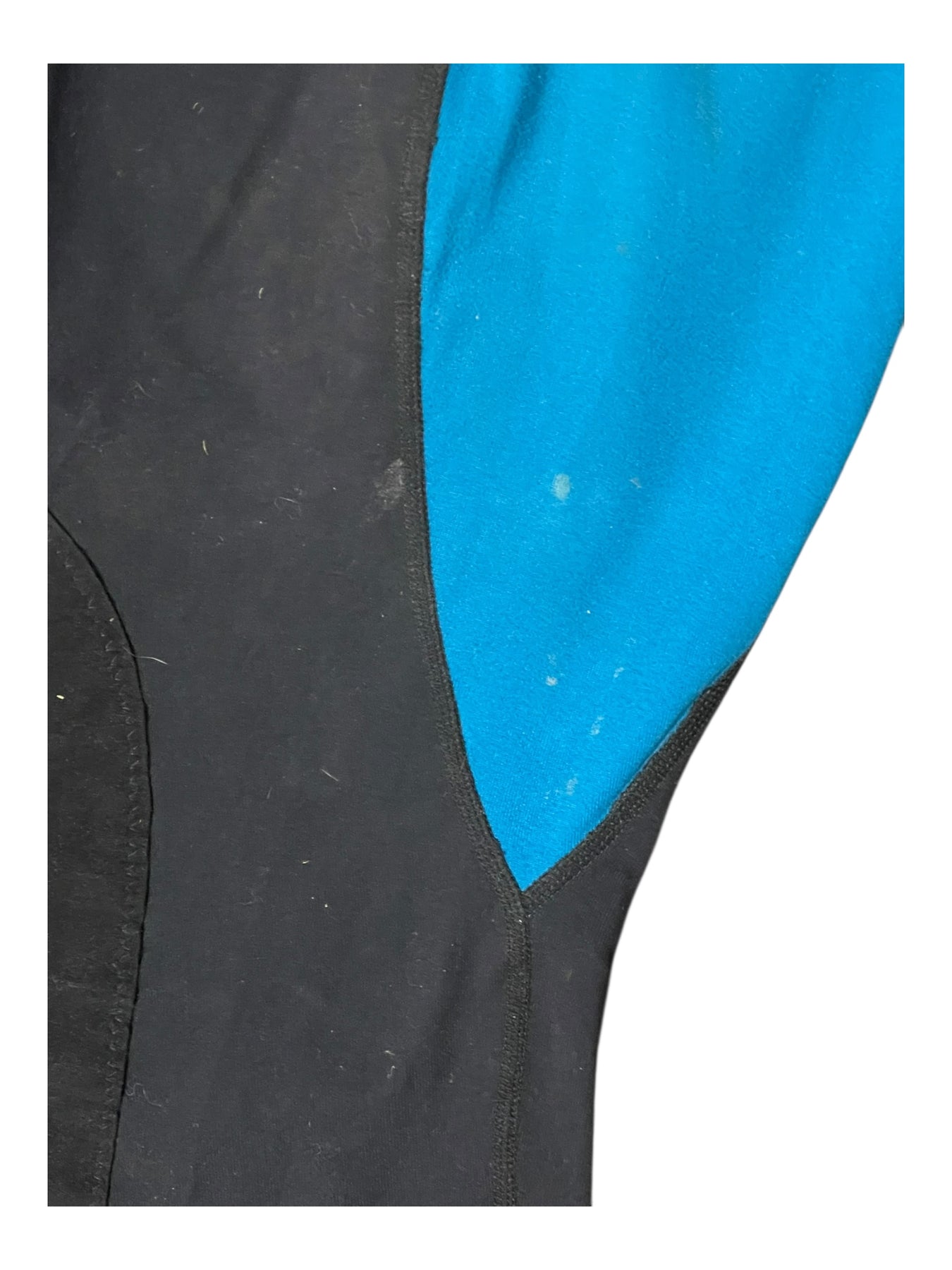 Condition: In moderate condition overall. While these tights do not show heavy wear such as pilling, pulled threads, holes, etc - they do have stains on the front and back that appear to be dried mud or something similar. While there's a chance these stains will come out with washing, it cannot be guaranteed.