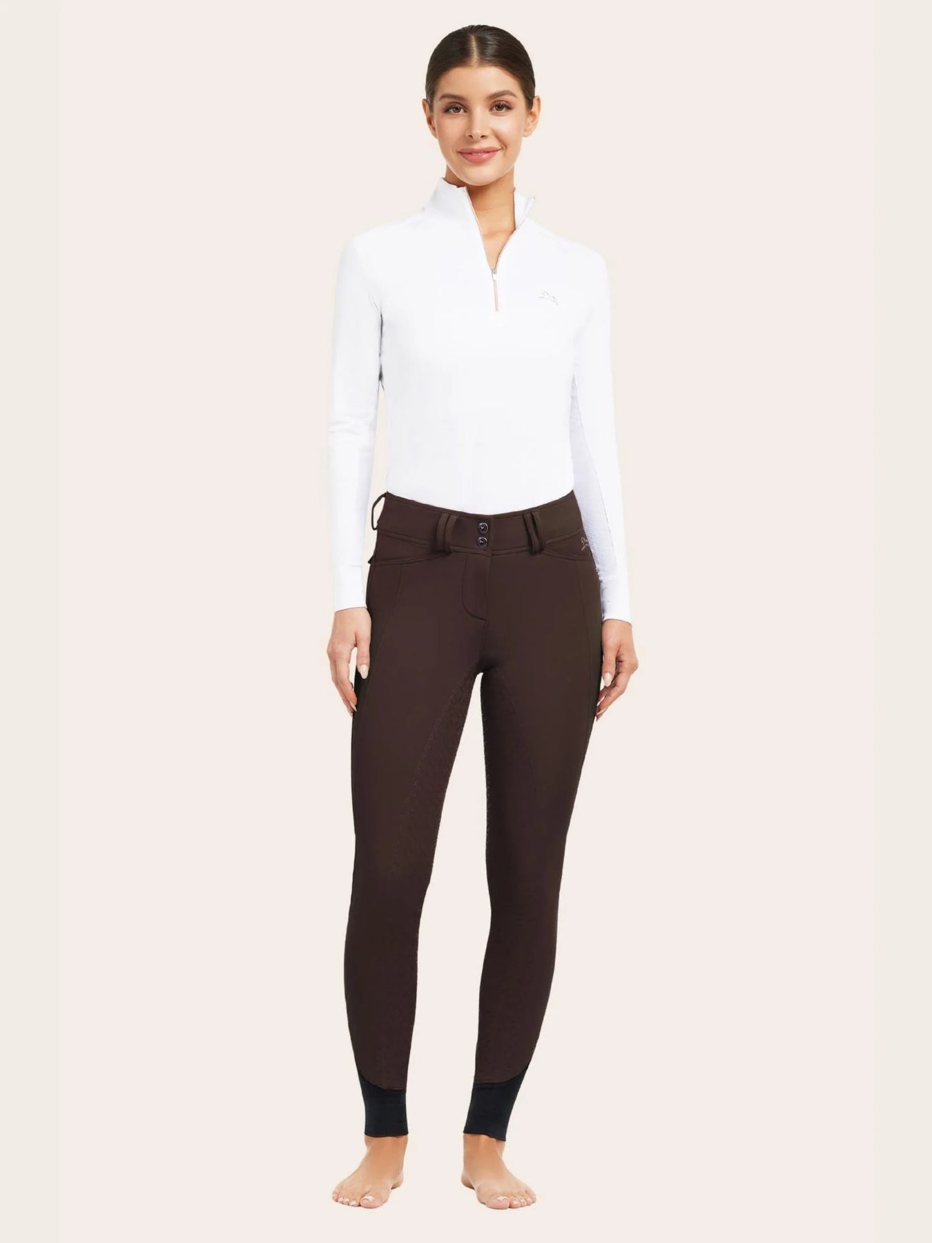 The Kaia breech features a silicone full seat in "The Perfect Rise," a mid-rise fit designed to keep you feeling and performing your best. The premium quick-dry and stretch fabric offers the perfect balance of comfort and structure.