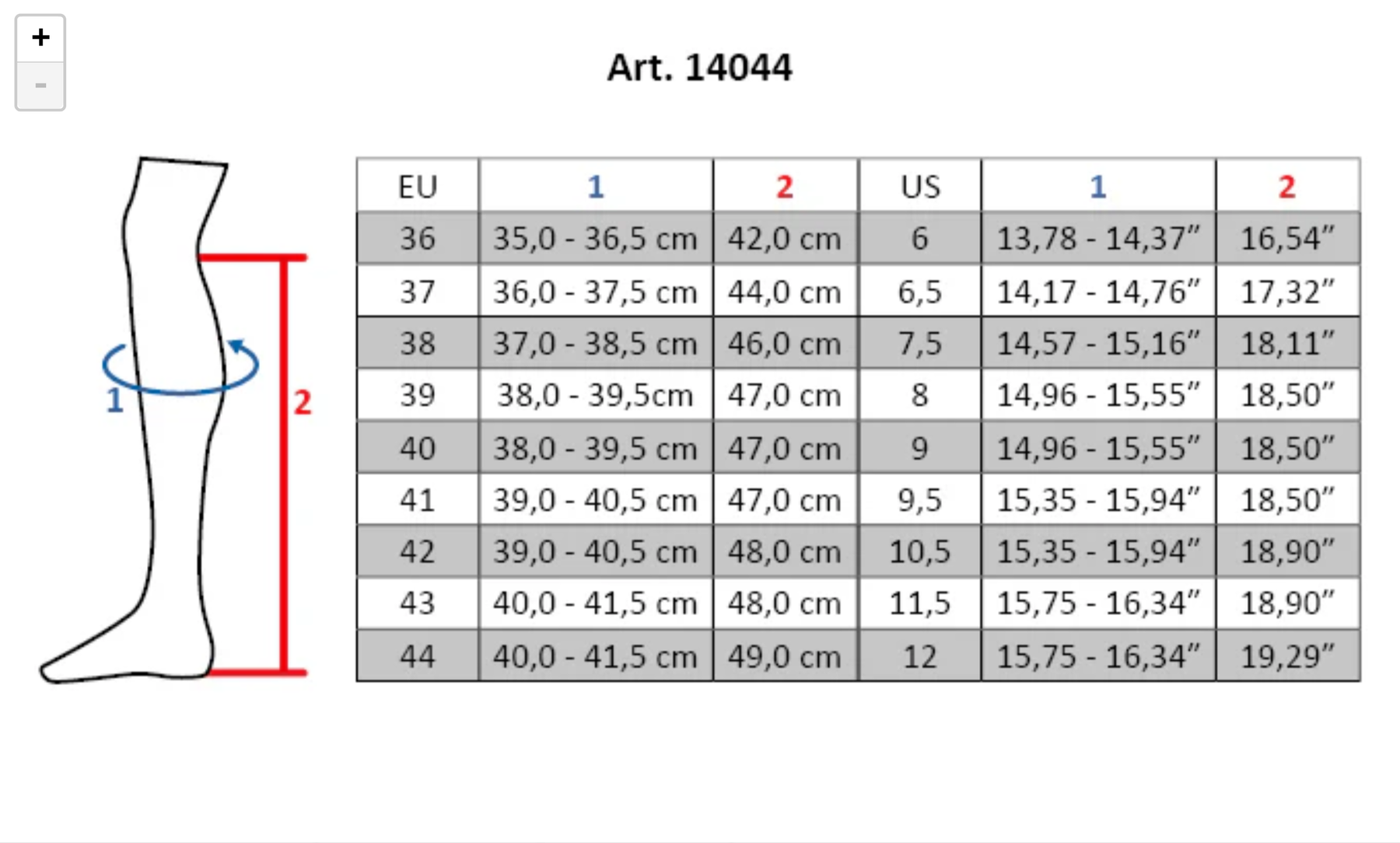 Calf: 39-40.5cm (15.35-15.94", considered regular calf according to size chart for Art. 14044)