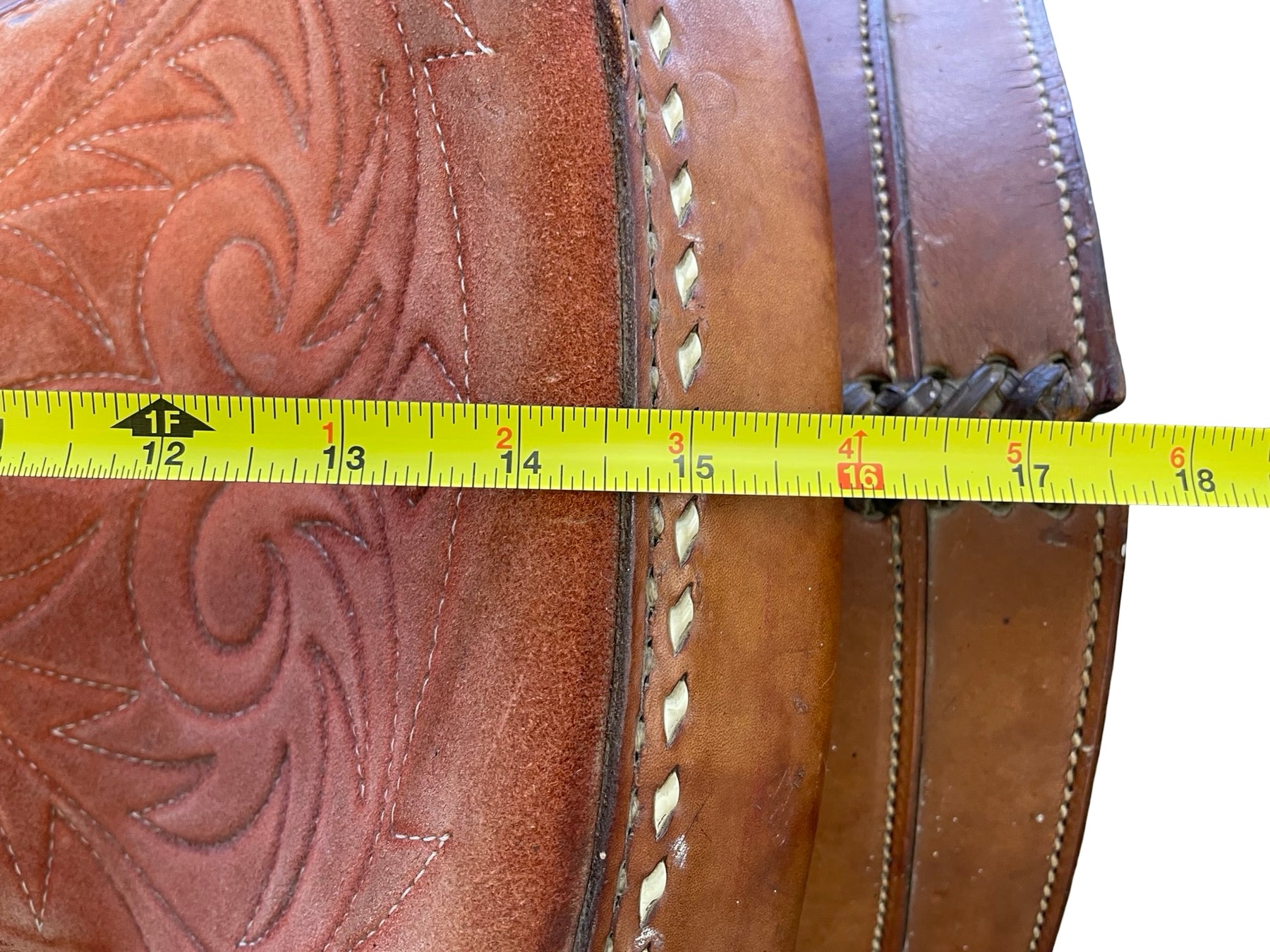 Brand: Tex Tan Skirt: Approx. 24" Seat: Approx 14" Color: Brown