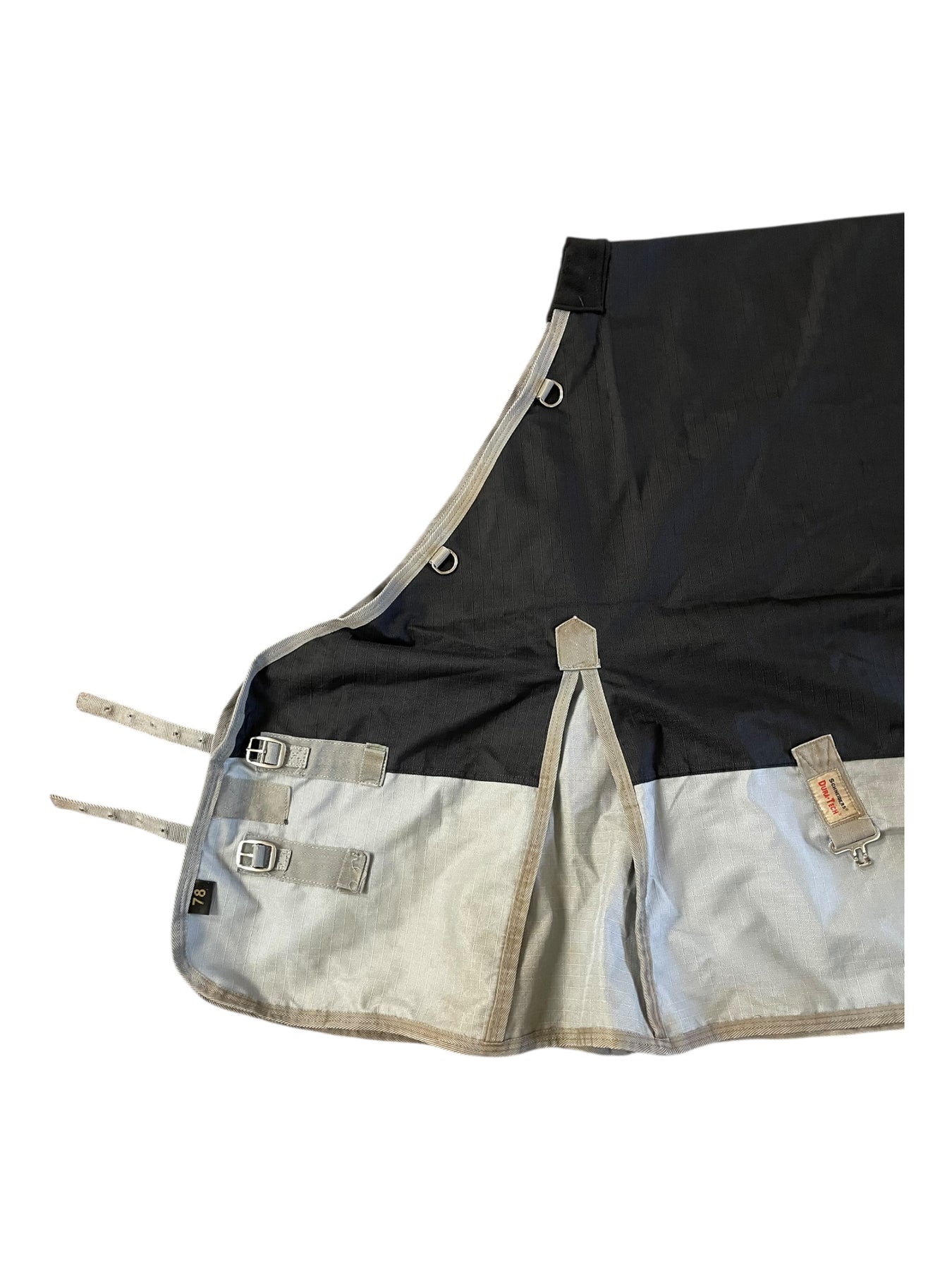 Features: Open front, bi-cross belly surcingle straps, leg straps, tail flap