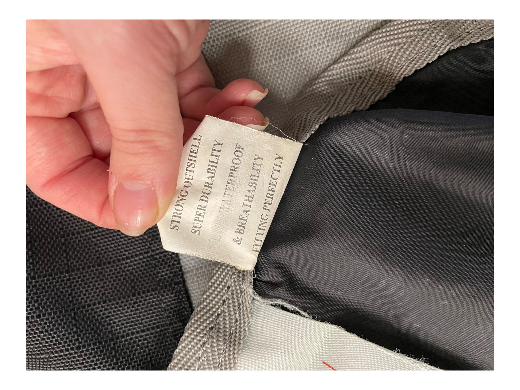 Condition: Well used. There's a large hole/tear on interior lining. Other areas on lining have been sewn back together. There are heavy patches of wear on exterior. Condition of waterproofing cannot be guaranteed.