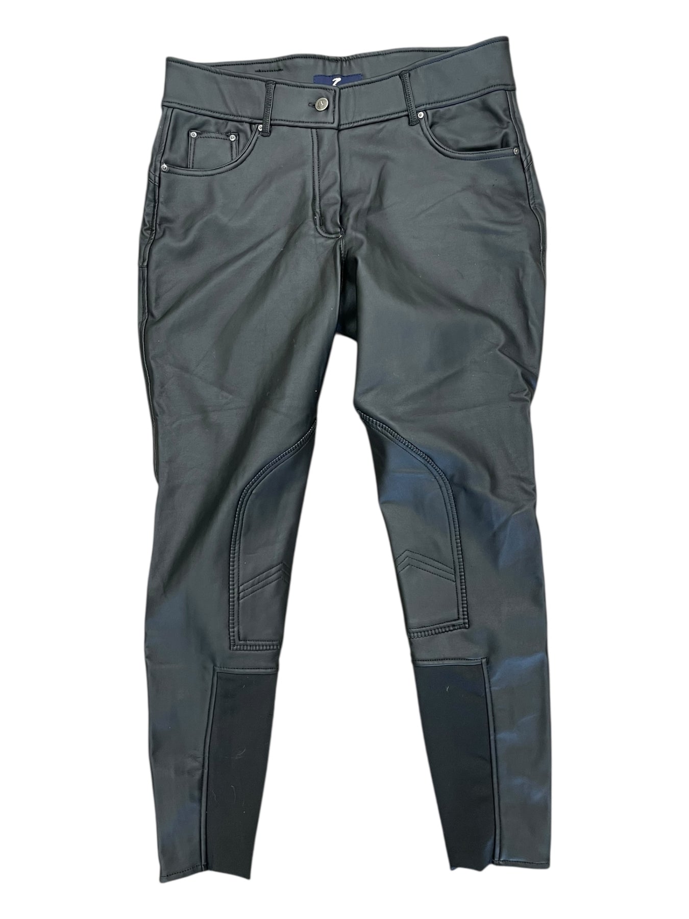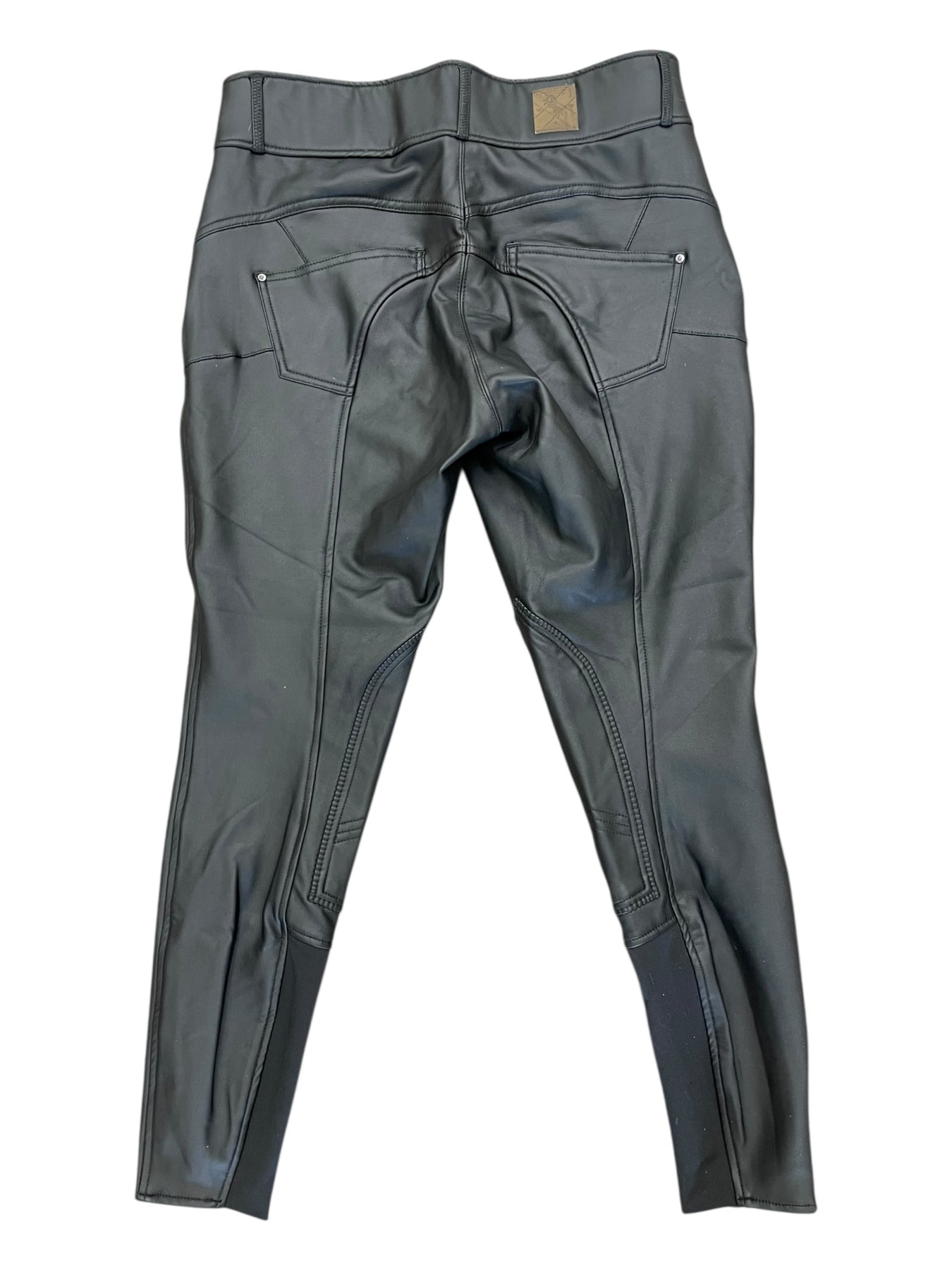 Horze Fleece Lined KP Breech - Black Faux Leather - 32 - USED
