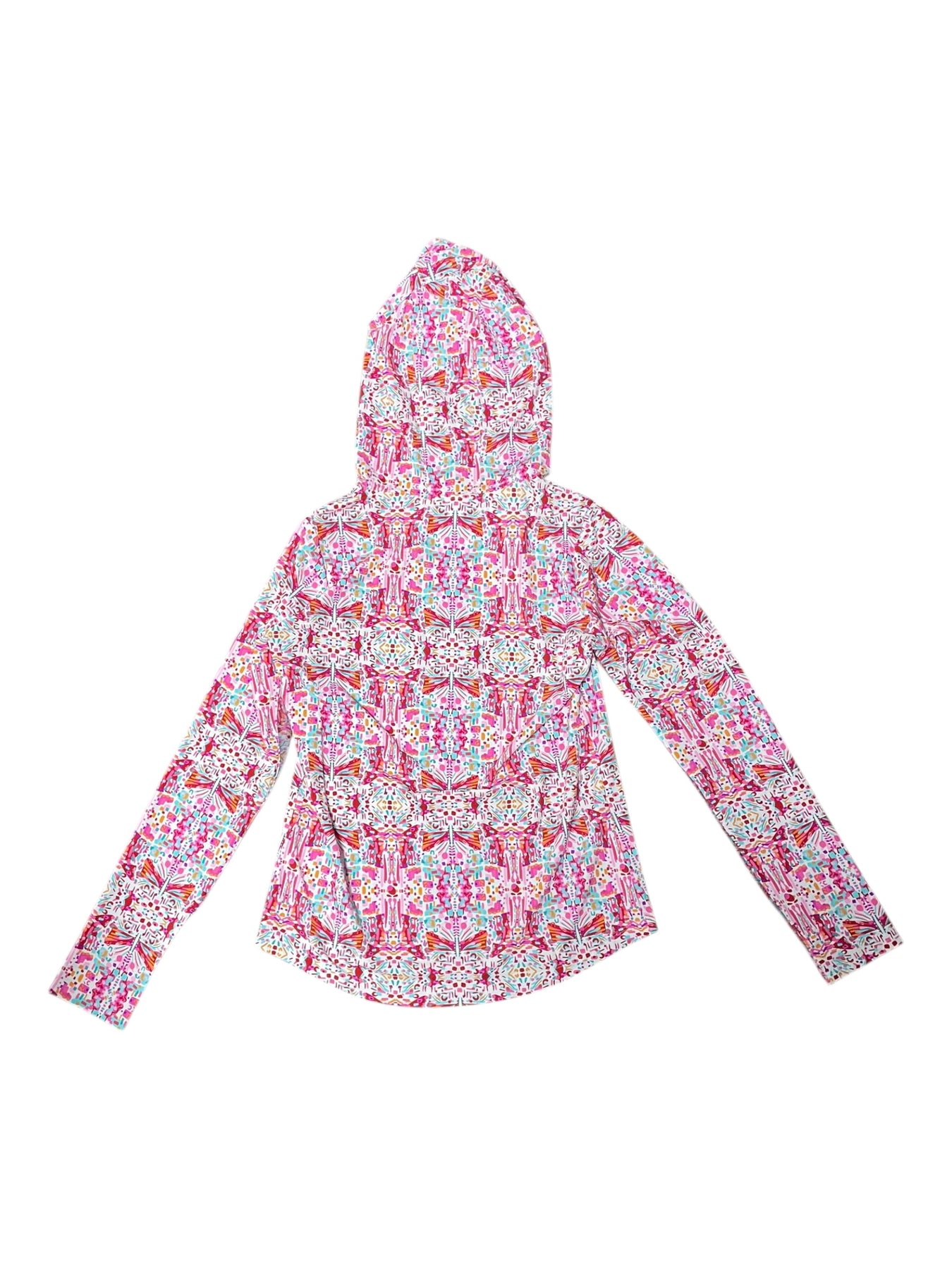 A fresh print meets functional design in the Long Sleeve Hoody in the Diana Print. With a relaxed fit, hood for extra sun protection, and thumbholes at the cuffs, this lightweight layer is perfect for staying covered and comfortable on the move. Printed mesh panels along the inner sleeves enhance airflow, while the Diana print’s bold, sketch-style florals bring a touch of artistry to your active wardrobe. Made with patented Iceƒil® cooling technology, UPF 50+ sun protection, moisture-wicking fabric, and anti-odor properties, this hoody keeps you cool, dry, and confidently styled from the first swing to your final stop.