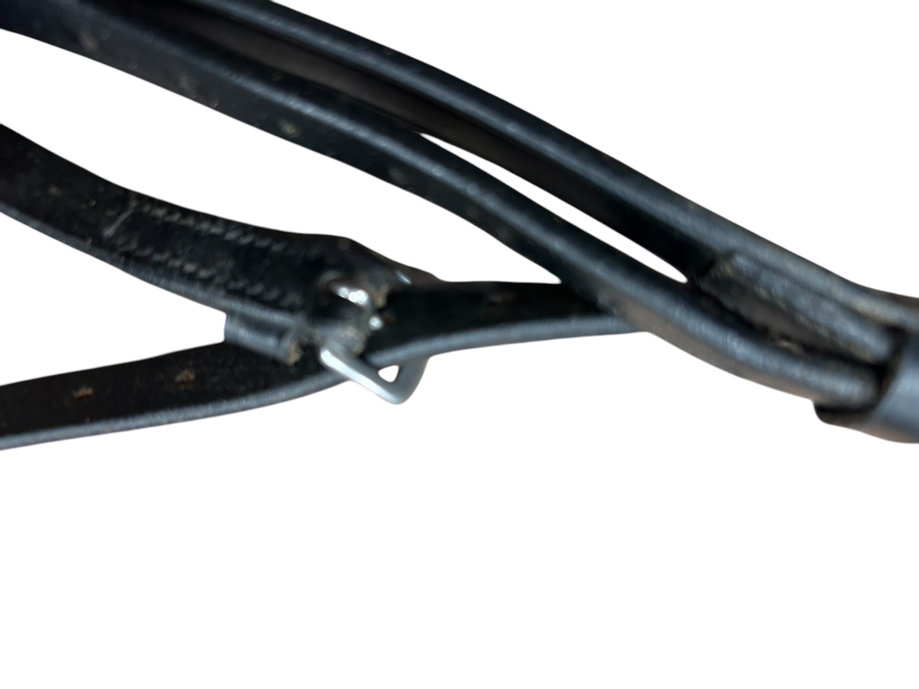 The new ergonomic Red Barn Arena Bridle features advanced fit designs providing extra comfort for the horse. The Arena’s key features include an ergonomically-designed noseband, adapted to fit the horse’s anatomy, alleviating pressure on the main facial nerve; and a softly padded, extra wide crownpiece to evenly distribute poll pressure. The Arena is complete with a shaped, padded round-raised leather browband and ½” cheek pieces. (This Bridle is sold without reins) All hardware is stainless steel, hook-stud end, with a roller buckle on the adjustable noseband. All Red Barn bridles are handcrafted with the finest Sedgwick’s English leather.