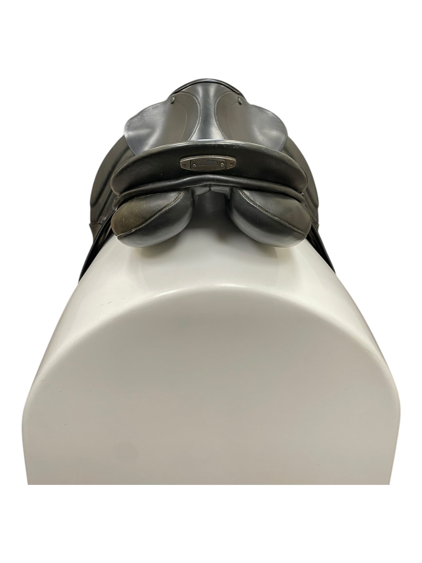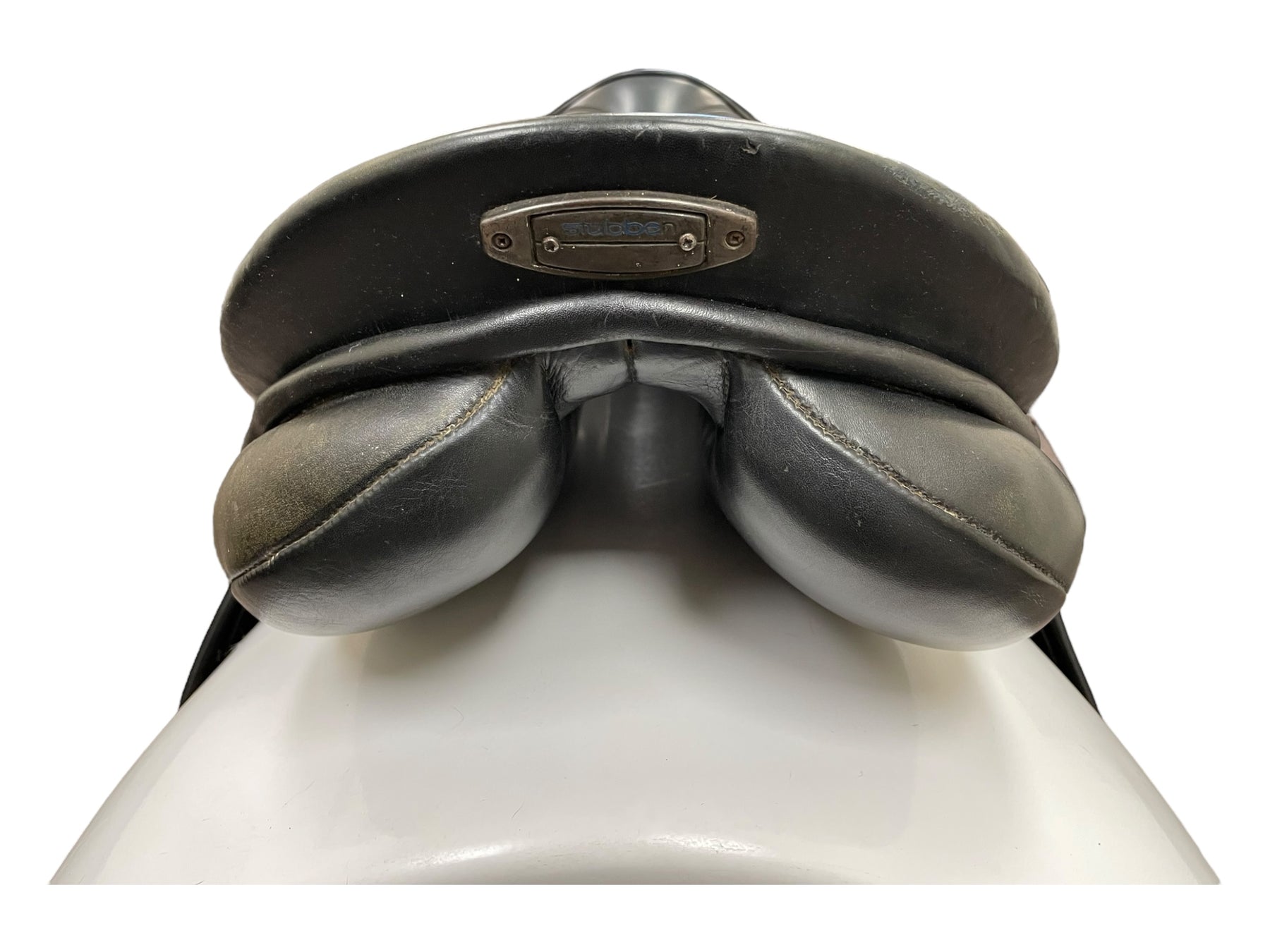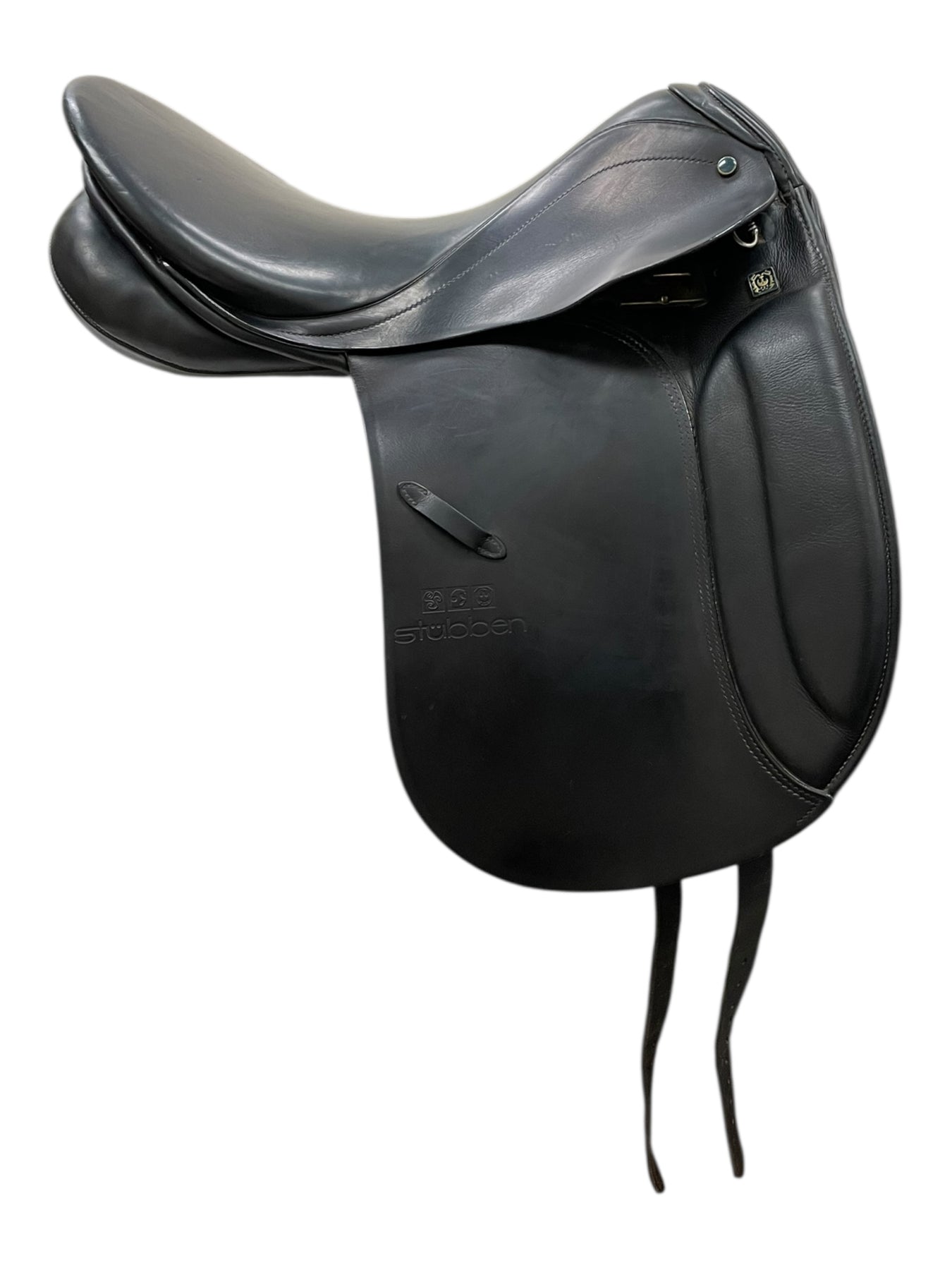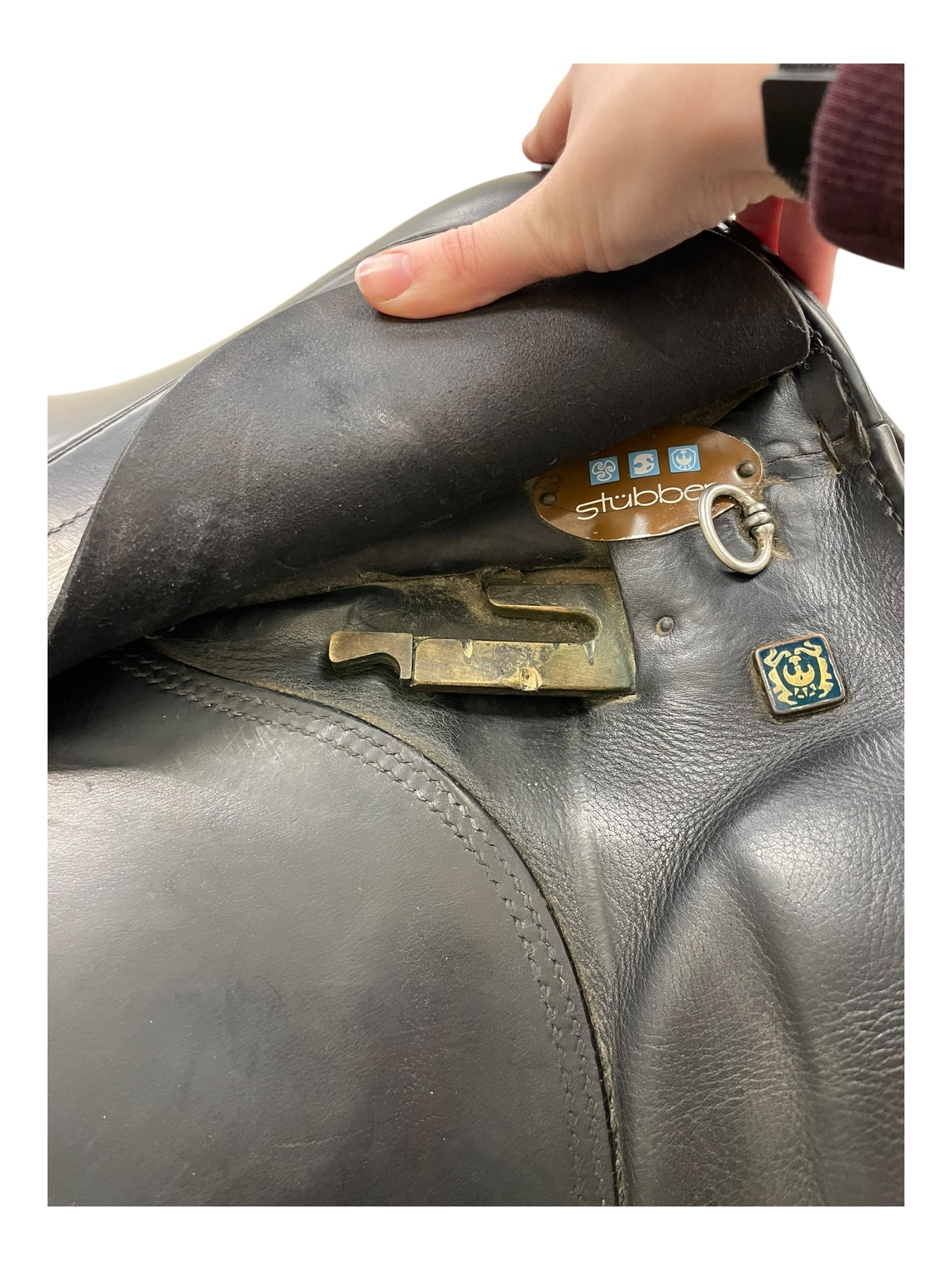 Brand: Stubben Model: Roxane Discipline: Dressage Flap: Dual Seat: Measures 17.5", although considered 18" through serial number. Flap Length: Measures approximately 15" Color: Black Tree: 32 (wide)